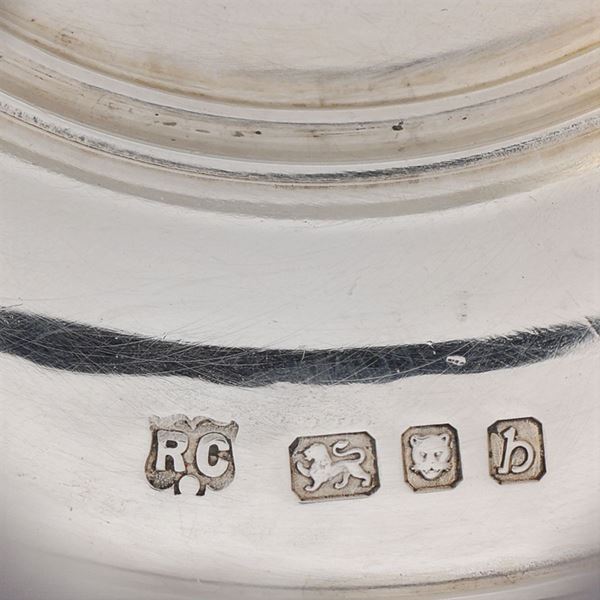 goldsmith Richard Comyns, smooth body on a circular base and baluster stem, 12,5x11 cm., peso 490 gr.