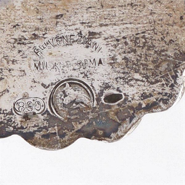 embossed body with chased profile with vegetal and scroll shaped patterns, 6x40,5x32 cm., peso 1130 gr.