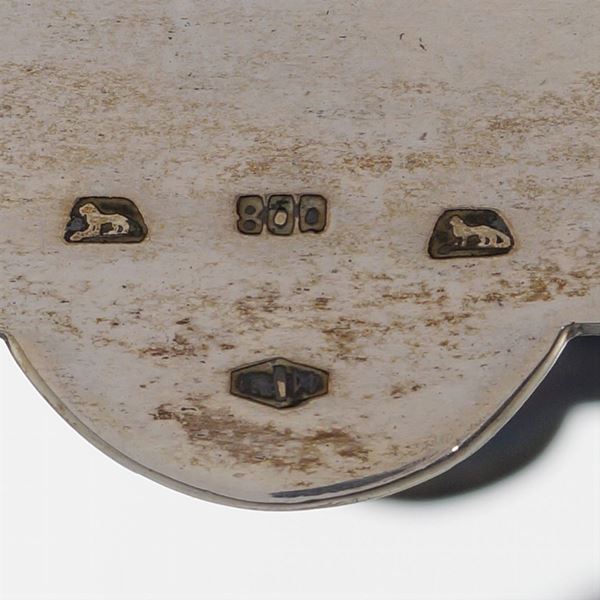 embossed and engraved body with vegetal patterns, volute handles, silversmith F.Lli Di Leone-Milan, slight defects, h 37 cm., 1810 gr.
