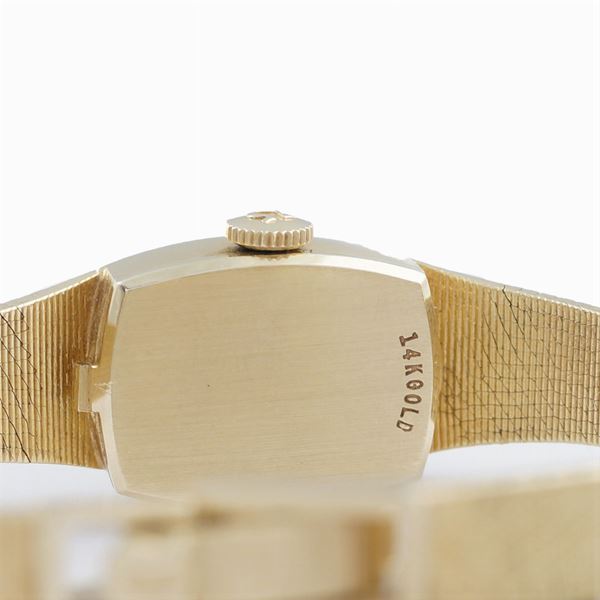 14kt yellow gold, rectangular case mm. 18, Ref. 278310, golden dial with indices, original gold bracelet with open box closure, peso 20 gr.