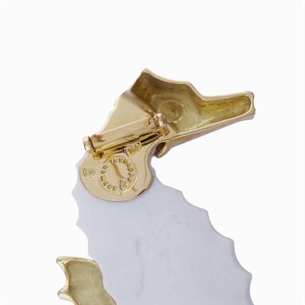 white bakelite mounted on 18kt yellow gold with turquoise, coral and small pearls, h. 6.3 cm., peso 28,5 gr.