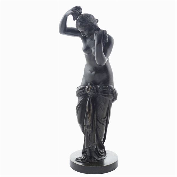 depicting Venus in the bathing, resting on a circular base. Provenance: Roman private collection, h. 35 cm.