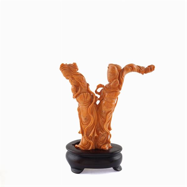 finely sculpted representing Guanyin figures, wood shaped base, h. 15,5 cm. (sculpture)