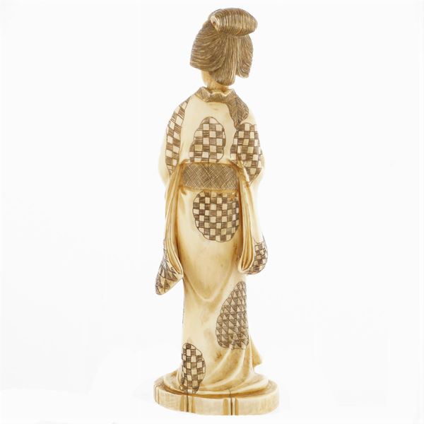 depicting a female figure with parchment and brush, resting on shaped base, h. 19 cm., peso 291 gr.
