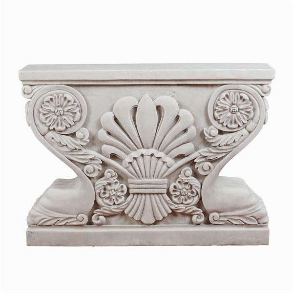 engraved with vegetal and scroll shaped patterns, slight defect, 73x103x21 cm.