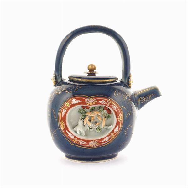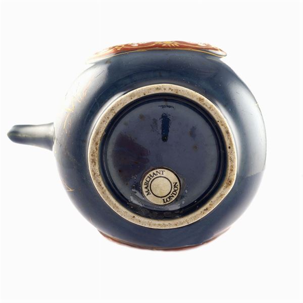 decorated in polychrome on a cobalt blue and partially golden. Provenance: Marchant, London, h. 13 cm.