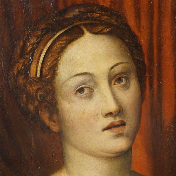 Condition: The painting surface is in good condition, the examination with the Wood lamp shows a restoration in the right eye area and other minor non-significant restorations, 84x57 cm.