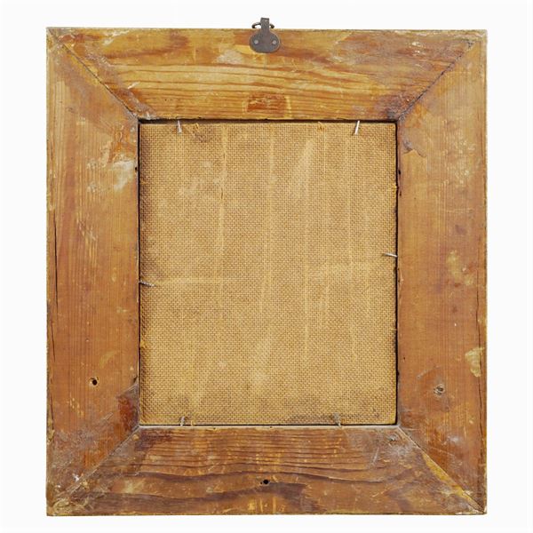 "Portrait of gentleman", oil on canvas applied table, within a golden wood frame, 21x18 cm.
