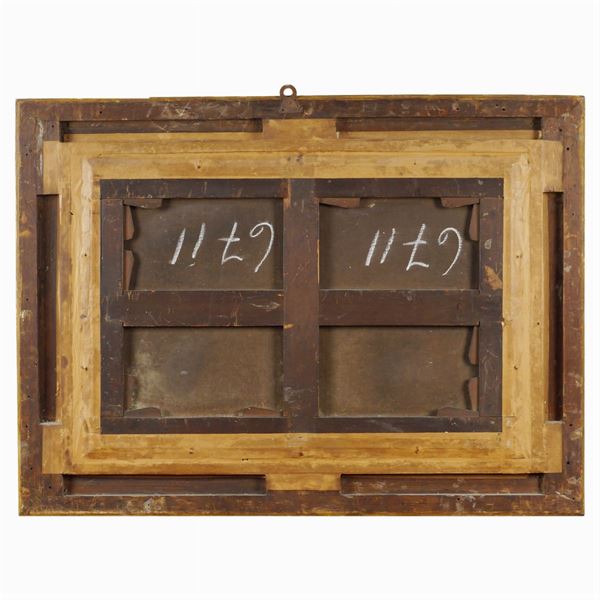 "Allegorical scene", oil on canvas, within golden wood frame, defects, 31x44 cm.