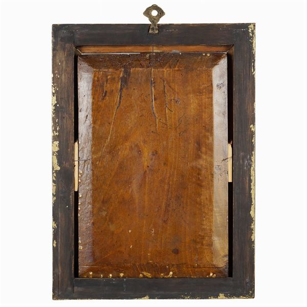 "Mater Pvrissima" oil on panel, within golden frame (not coeval), slight defects, 42x27 cm.