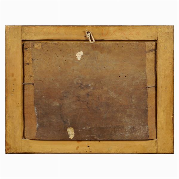 "Religious Scene", oil on panel, framed, slight defects, 31x42,5 cm.