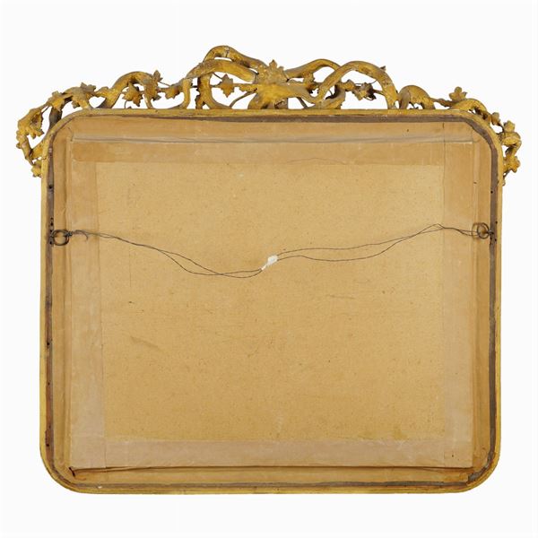 "Characters in costume with landscape background" pair of watercolors on paper, within golden and carved wood frames, defects, 40x53 cm.
