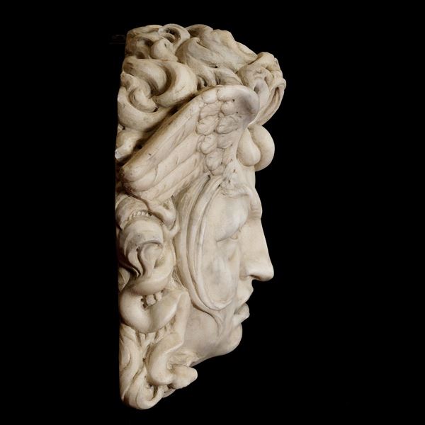 Medusa head in white marble