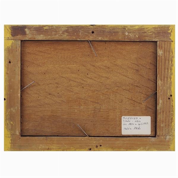 depicting "Pilgrims towards Rome", signed Schenk in the lower right, within a coeval frame in golden wood, 14,5x20 cm.