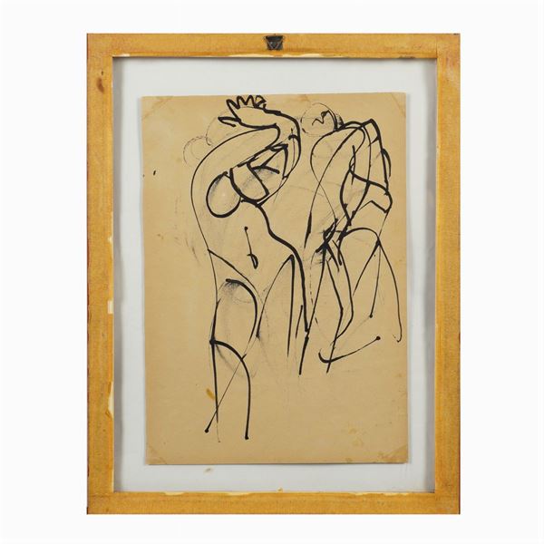 "Lovers" mixed technique on paper, signed and dated 1960 on the bottom right, framed, 35x25 cm.
