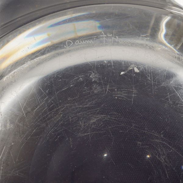 pentagonal shape, decorated with knots at the ends, signature under the base 'Daum Nancy France' and Lorena cross, defects, d. 30 cm.