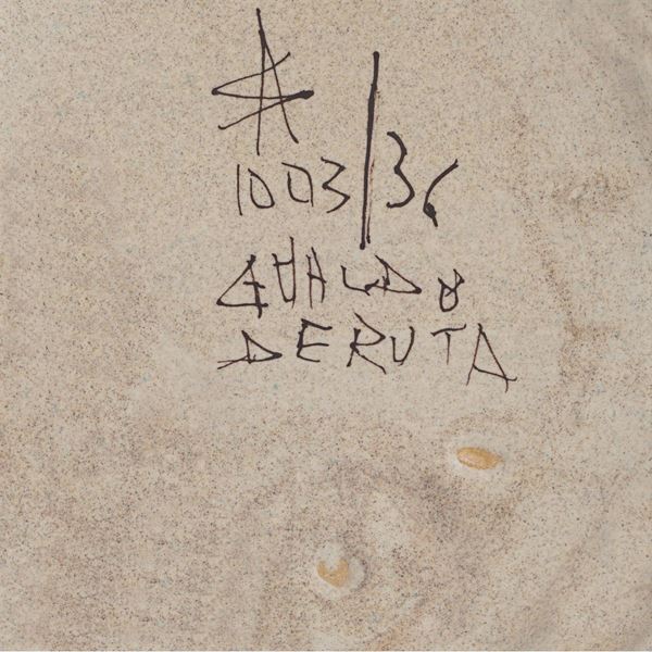 hand painted with abstract patterns and decorated with white enamels, signed 'AS 1003/36 Gualdo Deruta' under the base, slight defects, h. 40 cm.