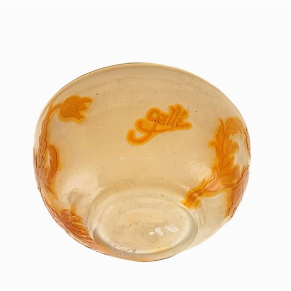 colorless glass with inclusion of orange vitreous powders. Acid and grinding manifacturing with floral patterns, cammeo signature, 12x6 cm.