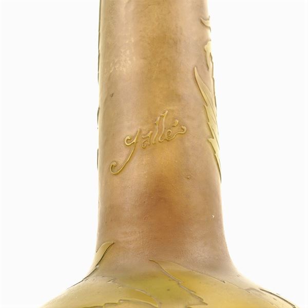 double glass in green and pink shades, bulb shape decorated with achillee flowers, cammeo signature, h. 34.5 cm.