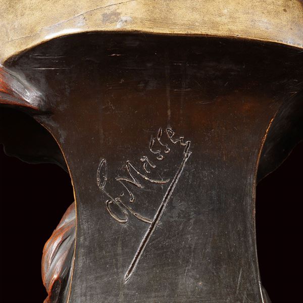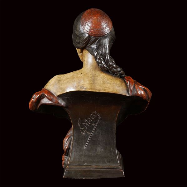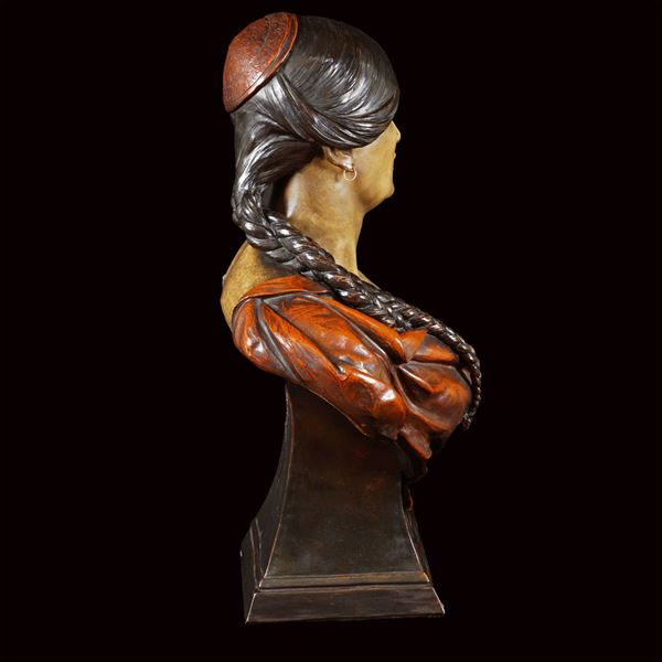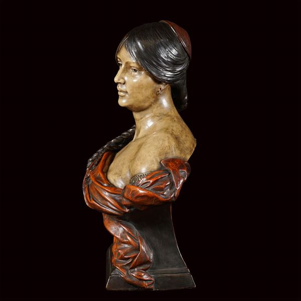 "Araba", terracotta sculpture decorated in polychrome, signature engraved on the back, slight defects, h. 62 cm.