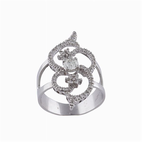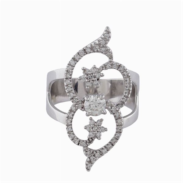 brilliant cut approx 0.18 ct surrounded by huit-huit cut diamonds approx. 0.48 ct arrange as floral pattern, size 14, peso 6 gr.