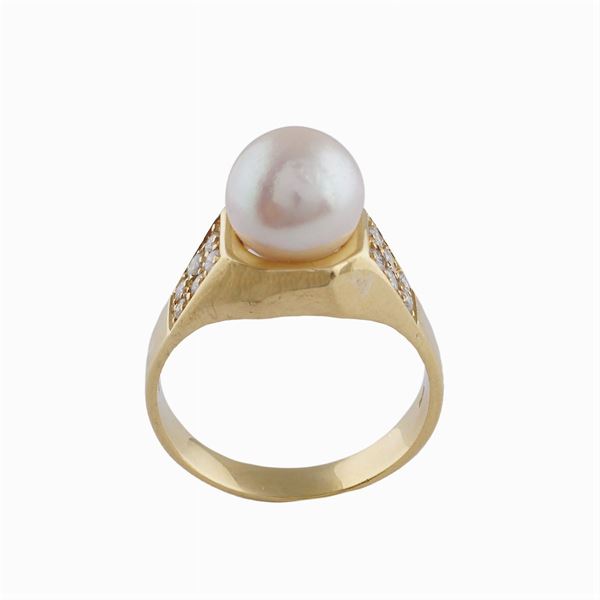cultivated pearl of approx. 10 mm., brilliant cut diamonds approx. 0.20 ct on the sides, size 24, peso 10,1 gr.