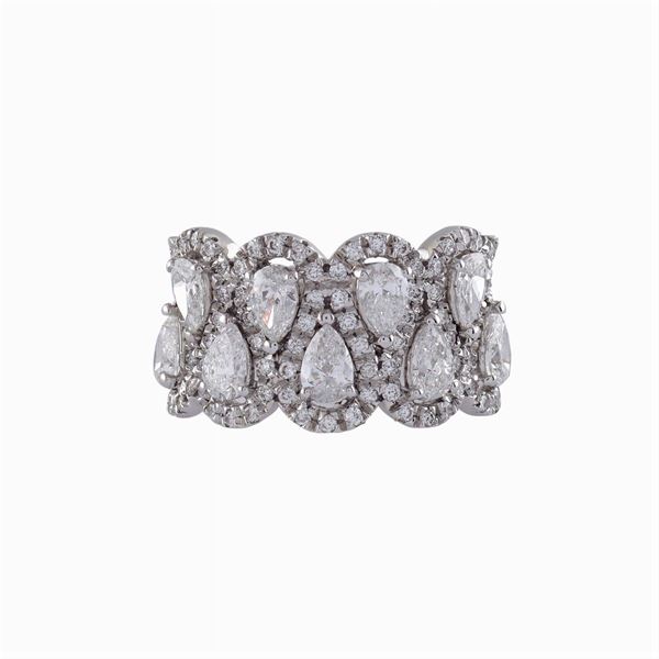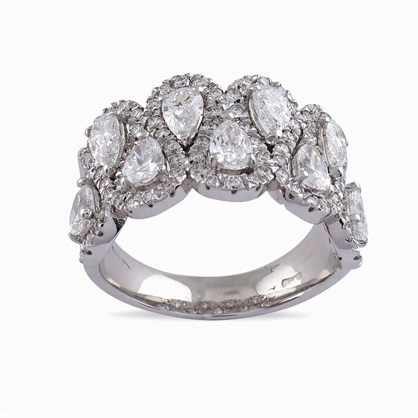 9 diamonds drop cut approx. 2 ct surrounded by huit-huit cut diamonds approx. 0.75 ct, size 14, peso 9 gr.