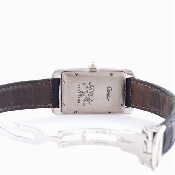 18kt white gold, rectangular case with brilliant cut diamonds, 41x23 mm., ref.1726 - 314831MG, crown with brilliant cut diamond, silvered dial dated at 6 o'clock, mechanic movement with automatic charge, leather strap with original 18kt white gold deployant buckle. Complete with box, documents and purchase receipt