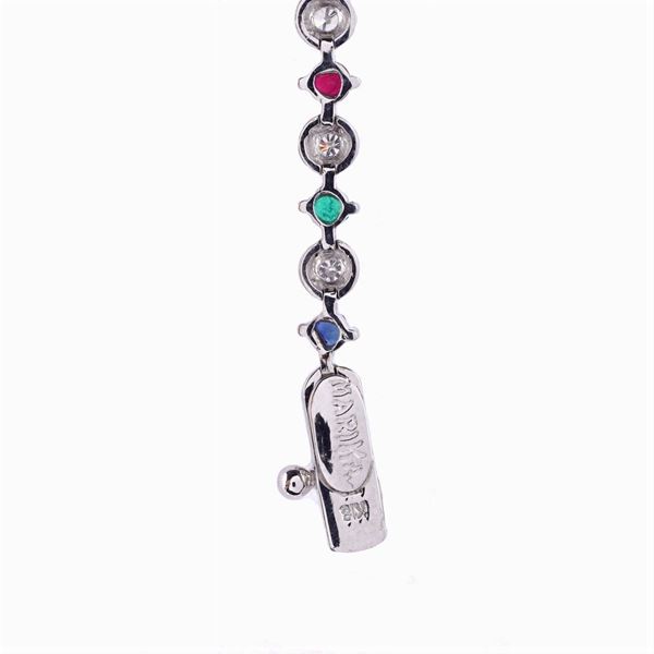 with brilliant-cut diamonds approx. 1 ct alternating with rubies, sapphires and round emeralds, hidden closure, length 17 cm., peso 5,9 gr.