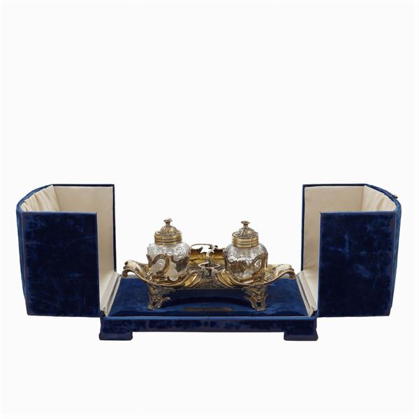 An important vermeil silver inkwell with two ampoules