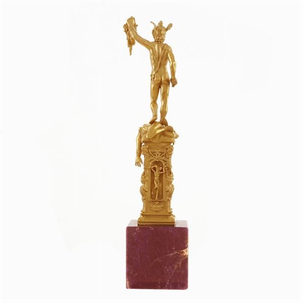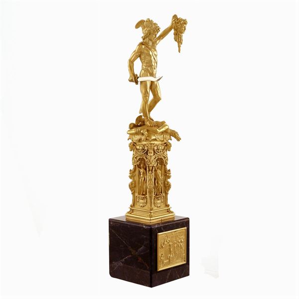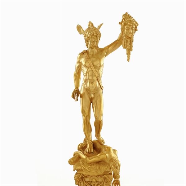 La scultura è tratta dalla scultura bronzea di Benvenuto Cellini ( 1500 - 1571 ) collocata nella loggia dei Lanzi in Piazza della Signoria, Firenze. Commissionata da Cosimo I dopo il suo insediamento come Duca della città, fu realizzata tra il 1545 e il 1554. Il Perseo ha chiaramente un significato politico, come la maggior parte delle statue poste sulla piazza: rappresenta infatti l'affermazione del Duca che dà un "taglio" alle esperienze repubblicane, rappresentate da Medusa. Certificato di autenticità Ventrella, Napoli, datato 16/07/2014.