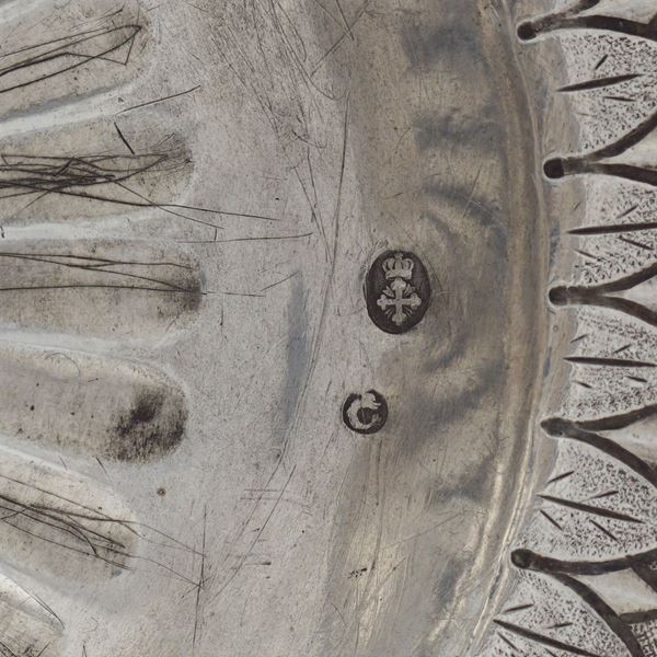 Giovanni Bruzza goldsmith, pierced body with vegetal patterns, chiselled profiles with palmettes patterns, slight restorations, 7x24x11 cm, peso 159 gr.
