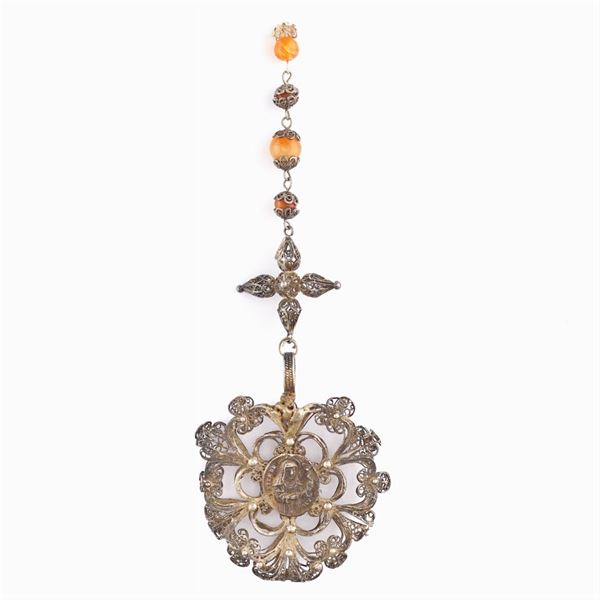 depicting San Francesco and Santa Rita, adorned by four corniola spheres, h. 19,5 cm., peso 20 gr.