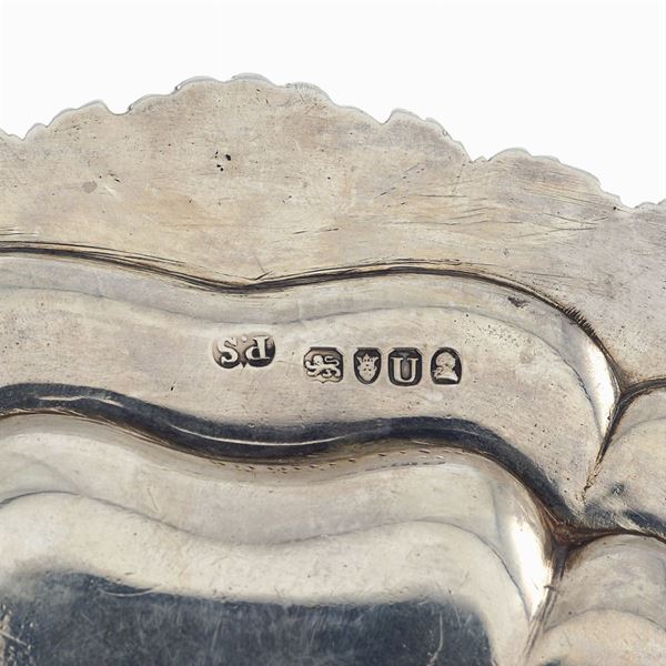 Paul Storr silversmith, shaped body with profile chiselled with vegetal and volutes patterns, d. 25,5 cm., peso 880 gr.