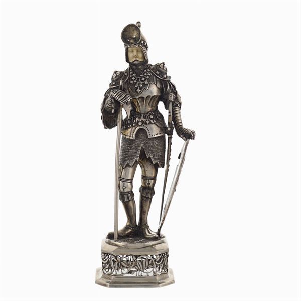 realistically decorated with a bone face, resting on a polygonal and pierced base, h. 23 cm., peso 480 gr.