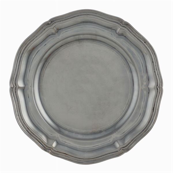 goldsmith Ricci & Co. srl, Alessandria, circular shape with shaped rim, d. 29 cm., wear, peso 6200 gr.