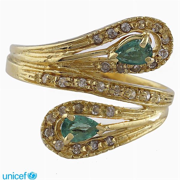two drop cut emeralds and huit-huit cut diamonds, size 14, peso 4 gr.