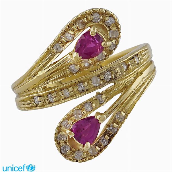 two drop cut rubies and huit-huit cut diamonds, size 8, peso 4 gr.