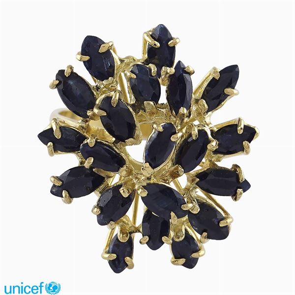 with marquise cut sapphires approx. 0,80 ct., size 14, peso 7 gr.