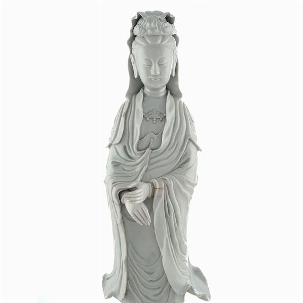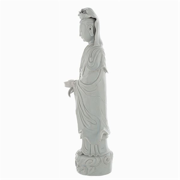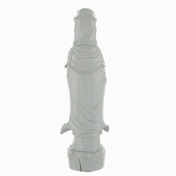 depicting a Guanyin with draped dress, slight defects, h. 49 cm., h. 49 cm.
