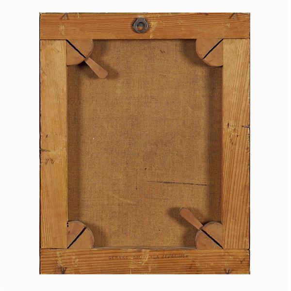 "The old spinner", oil on canvas, within a gilded wooden frame
