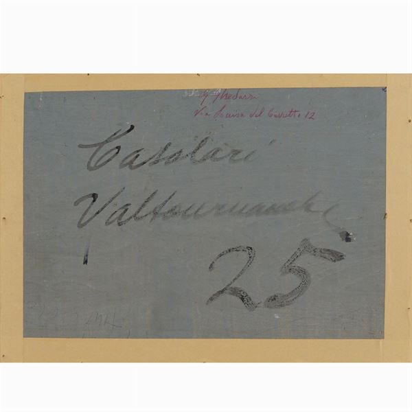 "Landscape of Valle d'Aosta", tempera on panel, framed in gilded wood.