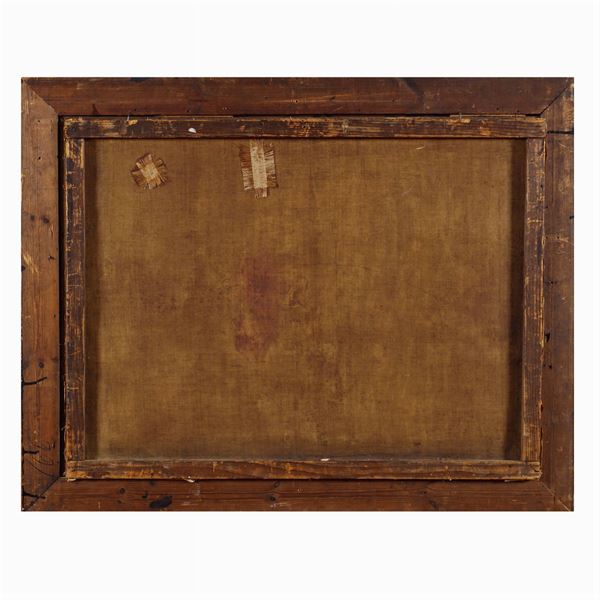 On examination of the Wood's lamp, the painting presents slight repainting interventions. On the back, there are traces of reinforcement of the original canvas.