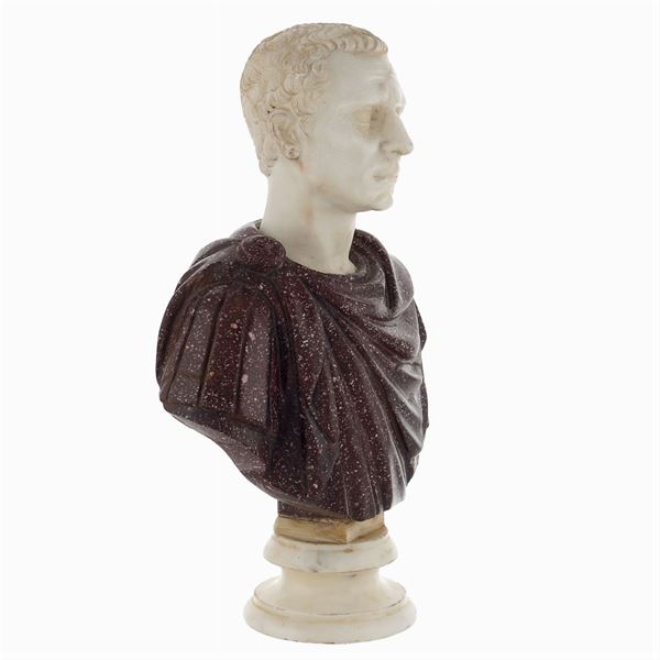 white Carrara marble and red porphyry, slight wears, 35,5x23x9,5 cm.