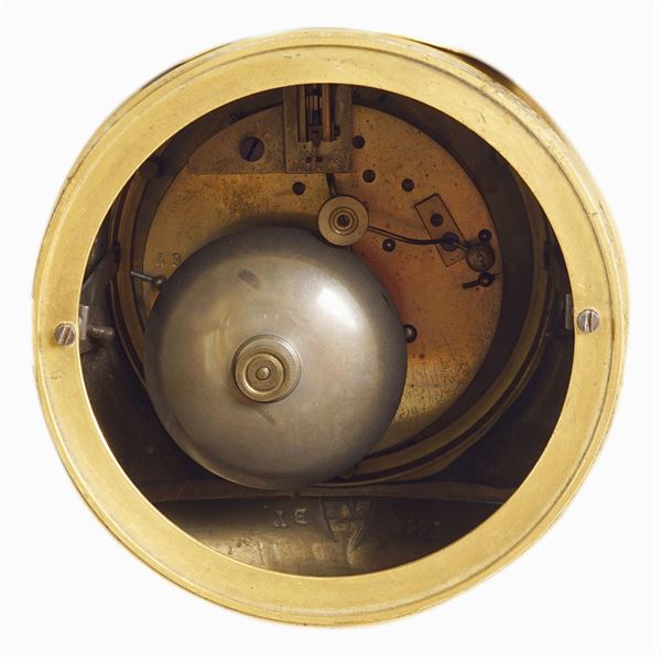 gilded bronze and chiselled with floral and vegetal festoons, enamel dial with Roman numerals and minutes in arabic numbers, signed Bathazar a Paris, 43x24x16 cm.