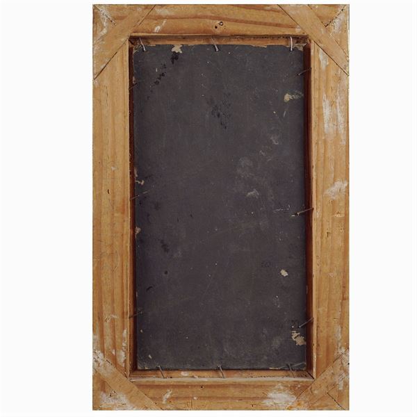 "Portrait of a young lady", oil on cardboard, signed at the top left, within a gilt wooden frame, 28x14 cm.
