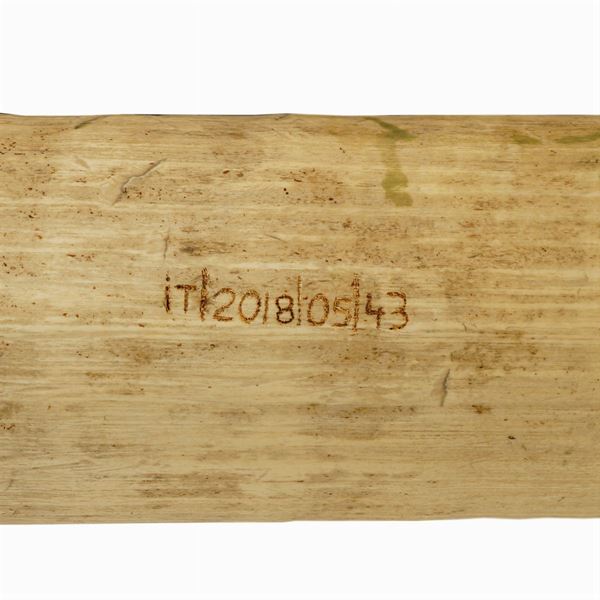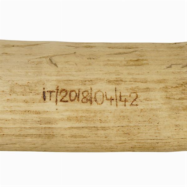 natural bone, length 221 and 220 cm., resting on ebonized wood bases, complete with Cites certificates for commercial activities n. IT/2018/04/42 and n. IT/2018/05/43, peso netto 42 - 43 kg