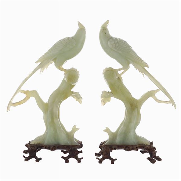 depicting two birds on branches, (one with restorations), h. 26 cm.