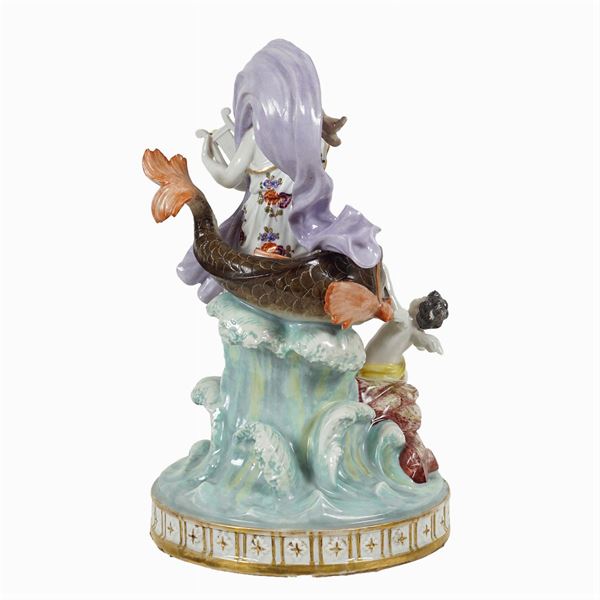 depicting Venus on the water with cupid, resting on circular base, mark under the base, slight defects, h. 30 cm.