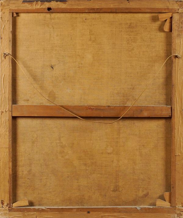 The work is reintelata. Wood's examination of the lamp shows moderate restoration work and some light plastering. In the upper part on the right there are two drops of color that allow to glimpse the canvas., 114x93 cm.